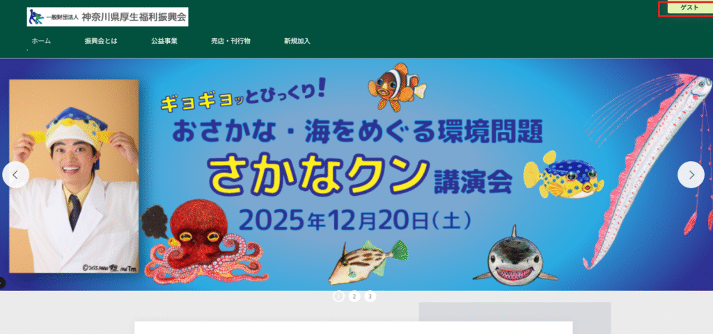 会員の方は画面右上の「ゲスト」をクリックし「会員ログイン」より会員ページにログインください。