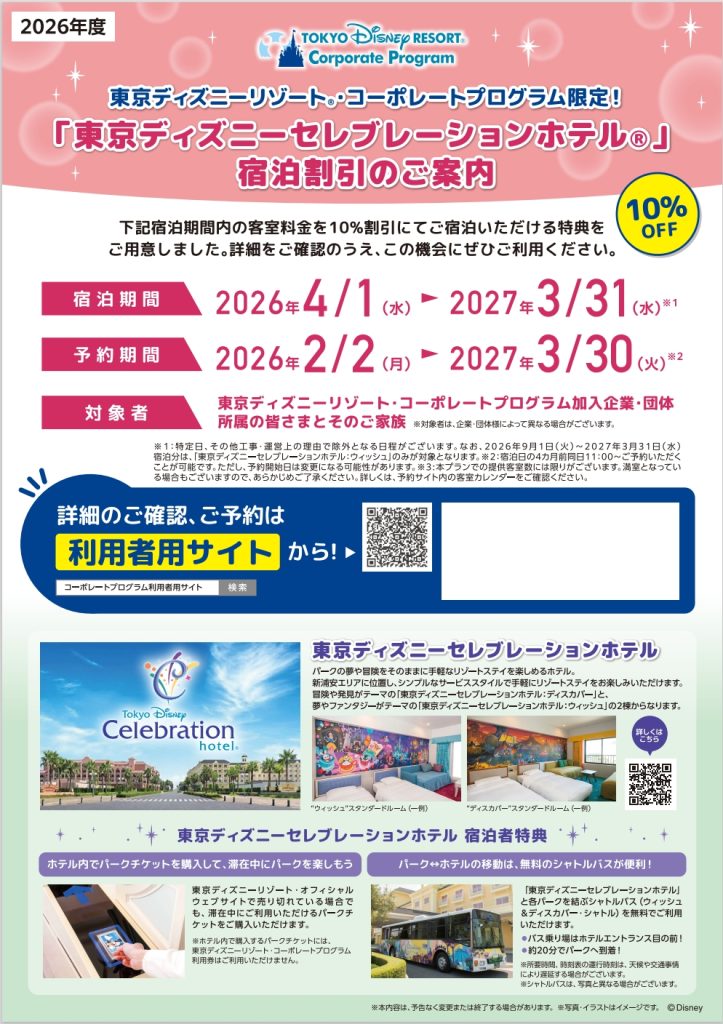 【2026 年度 「東京ディズニーセレブレーションホテル®」】宿泊割引のご案内